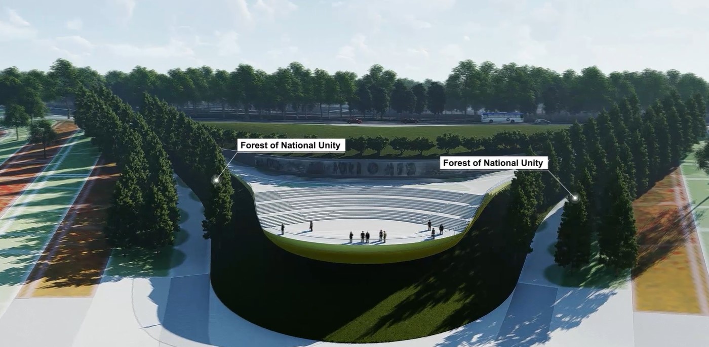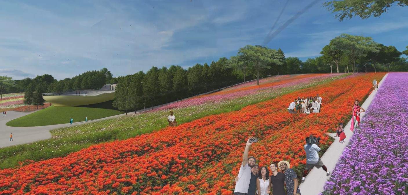 國(guó)花演講臺(tái)(Rostrum)位于文化禮儀軸東端,宛如“盛開(kāi)”的國(guó)花馬蹄蓮。