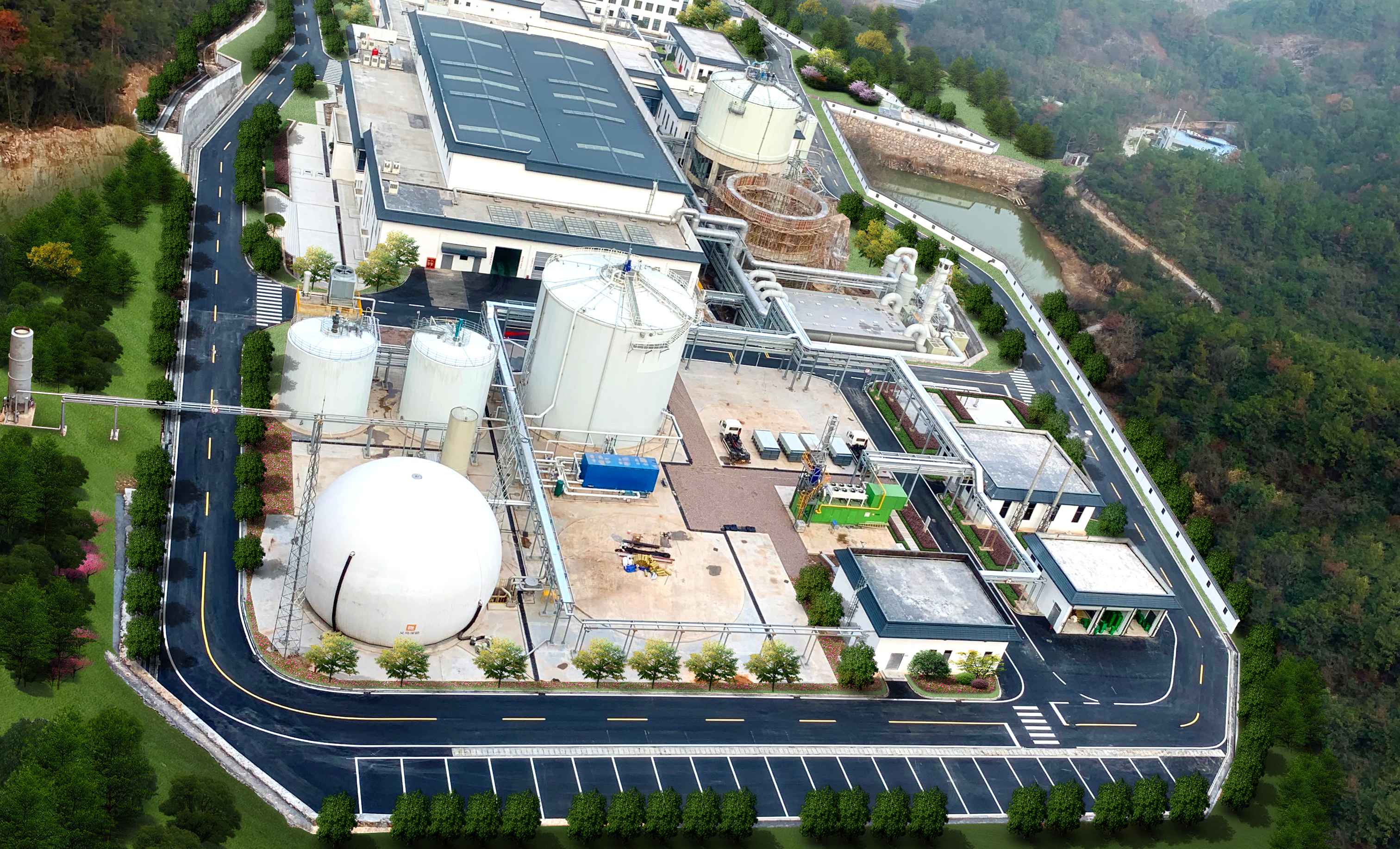 項(xiàng)目簡(jiǎn)介:餐飲垃圾200噸/日,廚余垃圾200噸/日,地溝油30噸/日,項(xiàng)目建筑設(shè)計(jì)融入江南徽派風(fēng)格,是國(guó)內(nèi)首個(gè)將餐飲垃圾與廚余垃圾協(xié)同進(jìn)行濕式厭氧與干式厭氧的餐廚垃圾處理項(xiàng)目,處理工藝技術(shù)路線為“預(yù)處理+濕式厭氧+干式厭氧+沼氣發(fā)電+沼液處理+臭氣處理”,厭氧沼氣經(jīng)過(guò)多級(jí)利用實(shí)現(xiàn)節(jié)能。