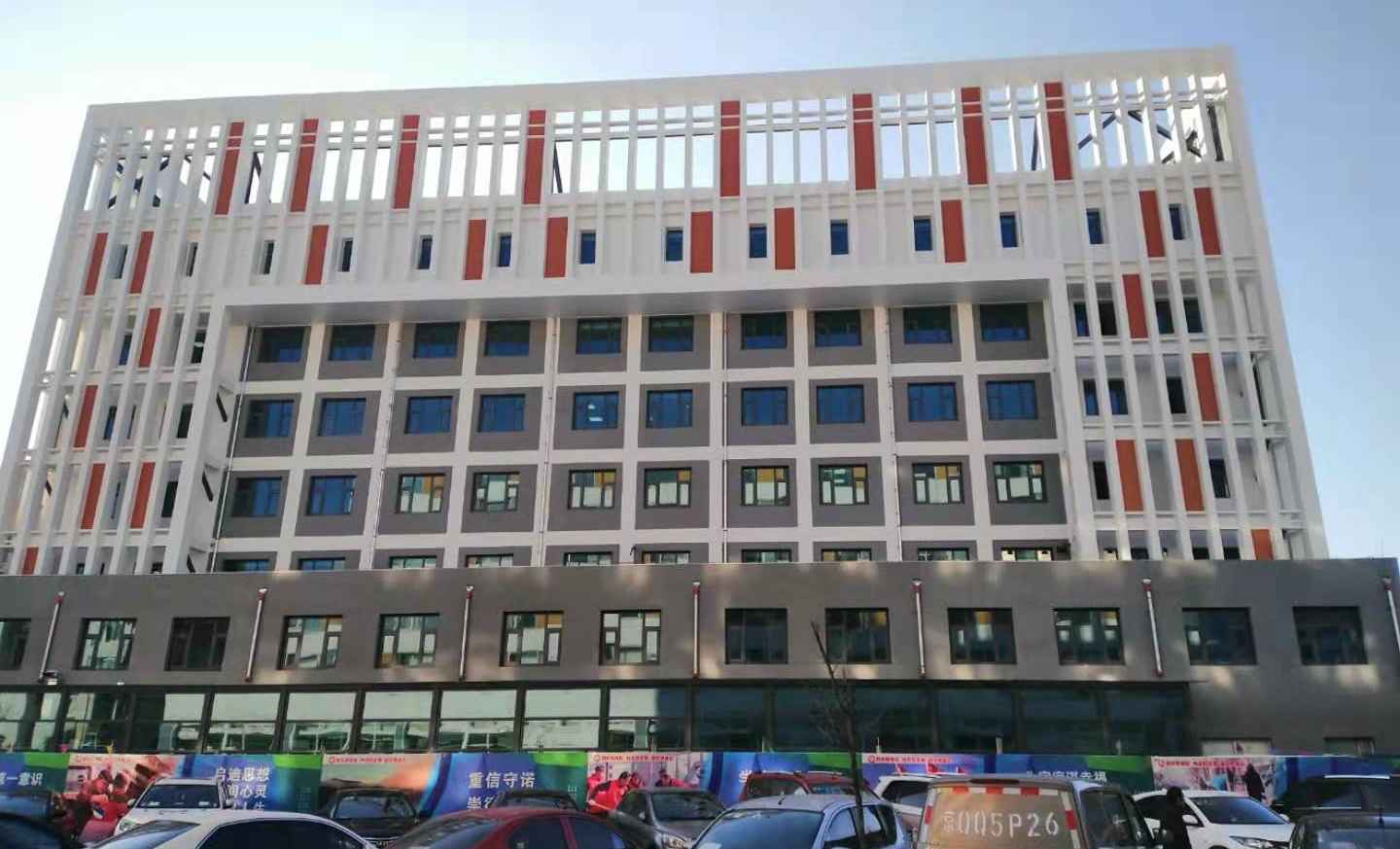 原建筑主體八層,外立面為鋁單板結(jié)合玻璃幕墻。本次工程擬拆除現(xiàn)狀外幕墻及外門窗,保留原建筑外墻體。重新鋪設巖棉板保溫層,采用鋁單板、純天然木飾面外墻板、涂料外裝修材料及斷橋鋁合金節(jié)能窗重新對外立面進行翻新裝修。同時為滿足功能需求,在建筑北側(cè)加建坡道頂蓋及設備吊裝孔。