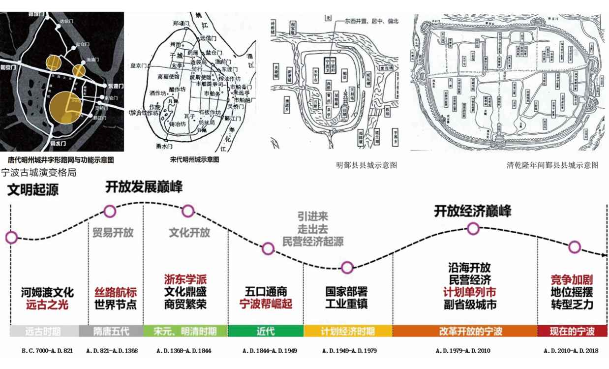 ① 系統(tǒng)研究。站在全域?qū)幉ǖ某叨壬?,研究寧波的大歷史、大格局,找準(zhǔn)寧波城市定位,在此基礎(chǔ)上針對(duì)寧波古城進(jìn)行系統(tǒng)性研究,提出系統(tǒng)性設(shè)計(jì)更新方案。
