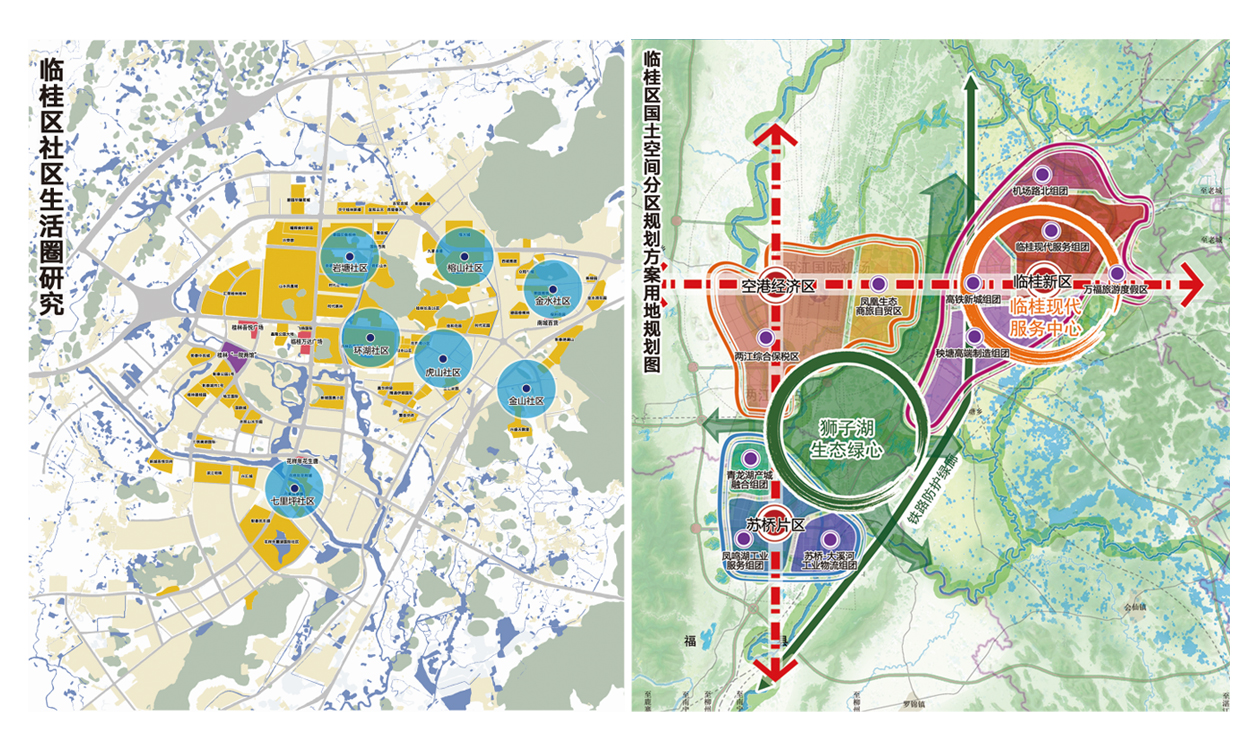 桂林市同步編制臨桂區(qū)國(guó)土空間規(guī)劃,上下協(xié)同,一體傳導(dǎo)。包括臨桂區(qū)全域2247.63平方公里和臨桂一城一區(qū)225.51平方公里范圍,規(guī)劃承接桂林市"國(guó)際旅游勝地·山水幸福桂林"的總定位,充分落實(shí)國(guó)家和自治區(qū)對(duì)臨桂的總要求,確立以"桂林城市新中心,區(qū)域開(kāi)放融合新門(mén)戶,桂林產(chǎn)業(yè)發(fā)展新高地,國(guó)際旅游勝地特色承載區(qū)"為城市戰(zhàn)略定位。分解落實(shí)桂林市各項(xiàng)指標(biāo)要求,明確全區(qū)發(fā)展目標(biāo)與規(guī)模。建立以"雙評(píng)價(jià)"為基礎(chǔ)的與國(guó)土空間評(píng)價(jià)機(jī)制,優(yōu)化空間格局,構(gòu)建"一核三軸三片區(qū)"的國(guó)土空間開(kāi)發(fā)保護(hù)總體格局;強(qiáng)化底線管控∶推進(jìn)生態(tài)優(yōu)先、綠色發(fā)展,統(tǒng)籌劃定"三條控制線"。繼承城市西向發(fā)展總戰(zhàn)略,面向未來(lái)優(yōu)化空間組織,利用開(kāi)放型要素聯(lián)動(dòng)支撐促進(jìn)產(chǎn)業(yè)園區(qū)與城市服務(wù)功能融合,保障發(fā)展實(shí)體經(jīng)濟(jì)的產(chǎn)業(yè)空間,引導(dǎo)資源集聚、提高空間使用效率,推動(dòng)跨界地區(qū)一體化建設(shè),造好、造美、造強(qiáng)西部這個(gè)新桂林。