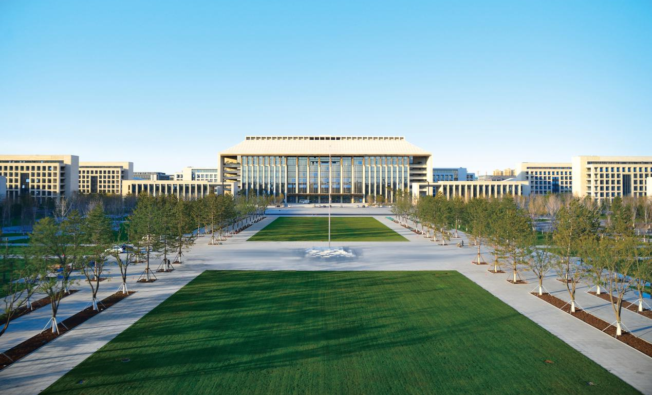 行政辦公區(qū)核心區(qū)總面積約122公頃,景觀結(jié)構(gòu)為:一條生態(tài)軸貫穿南北,由豐字溝水系和建筑公共綠地組成環(huán)抱行政辦公核心區(qū)的生態(tài)圍合,整體形成全區(qū)山水結(jié)構(gòu)與自然式的園林景觀。